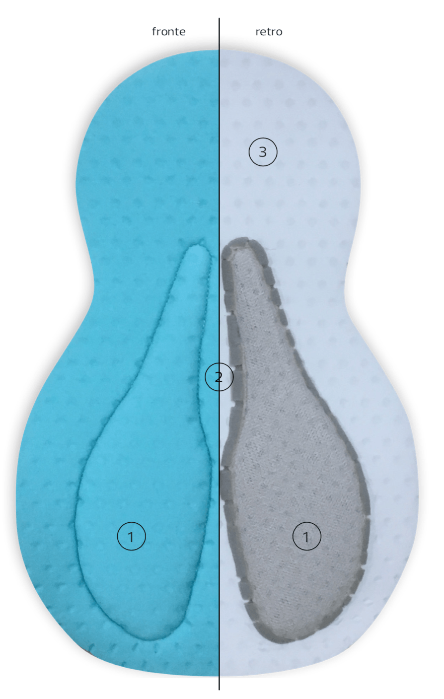 Finally, the last layer is made by incorporating Poron 3, a new material with a memory function that ensures high cushioning from impacts and vibrations during training and competitions. It features a slow release of compression, providing long-lasting comfort even during extended rides.