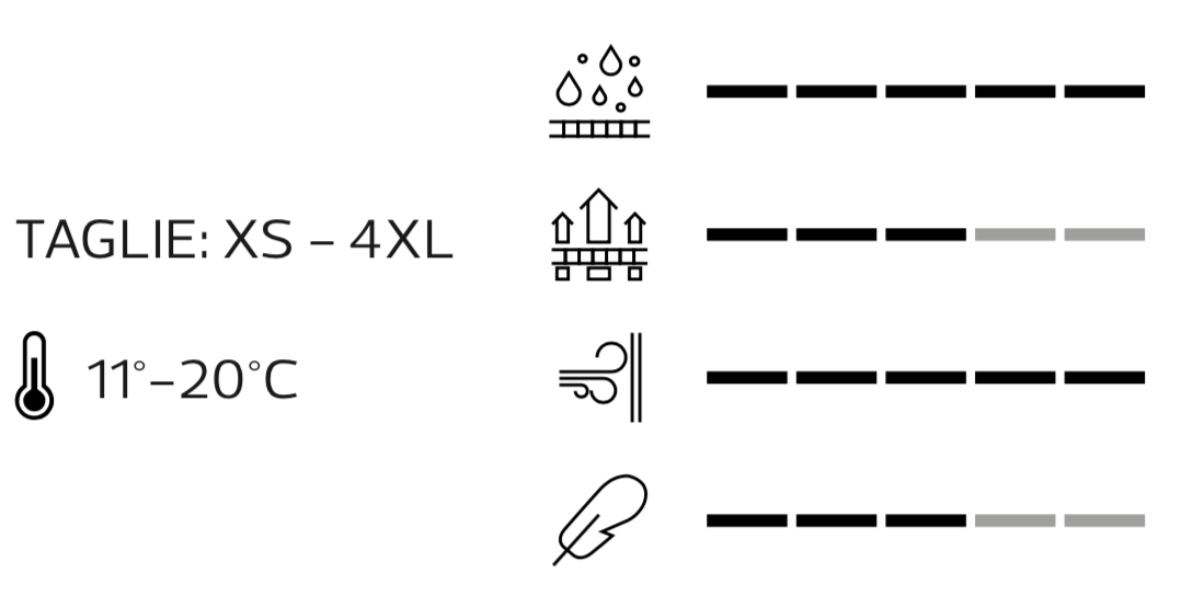 Long-sleeved cape made of ELight fabric resistant to wind and water thanks to an additional water-repellent treatment